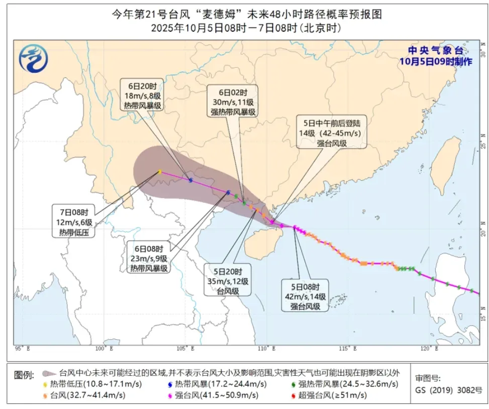 10月5日8时,台风“麦德姆”中心距离距离徐闻县偏东方向约160公里,中心附近最大风力14级。气象部门预计永信证券,“麦德姆”将继续以25公里左右的时速向西北方向移动,强度继续增强,将于10月5日下午以强台风级在徐闻到东海岛之间沿海地区登陆。